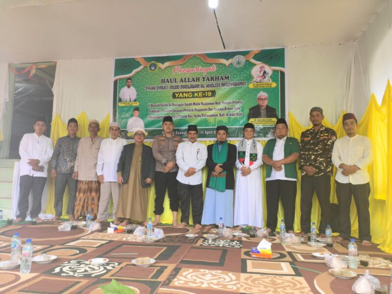 KUBU BABUSSALAM_ANALISA– Dalam rangka mempererat hubungan silaturahmi serta menjaga kedekatan dengan seluruh elemen masyarakat, perwakilan dari Polsek Kubu menghadiri kegiatan haul Allah Yarham Syekh Saufi Mudo Madlawan Al Kholidi Naqsyabandi. Kegiatan berlangsung pada hari Rabu, 15 April 2026, mulai pukul 09.00 WIB hingga pukul 12.30 WIB, bertempat di Rumah Suluk Pondok Pesantren Aswaja, Jalan Pondok, Kepenghuluan Sungai Pinang, Kecamatan Kubu Babussalam, Kabupaten Rokan Hilir.