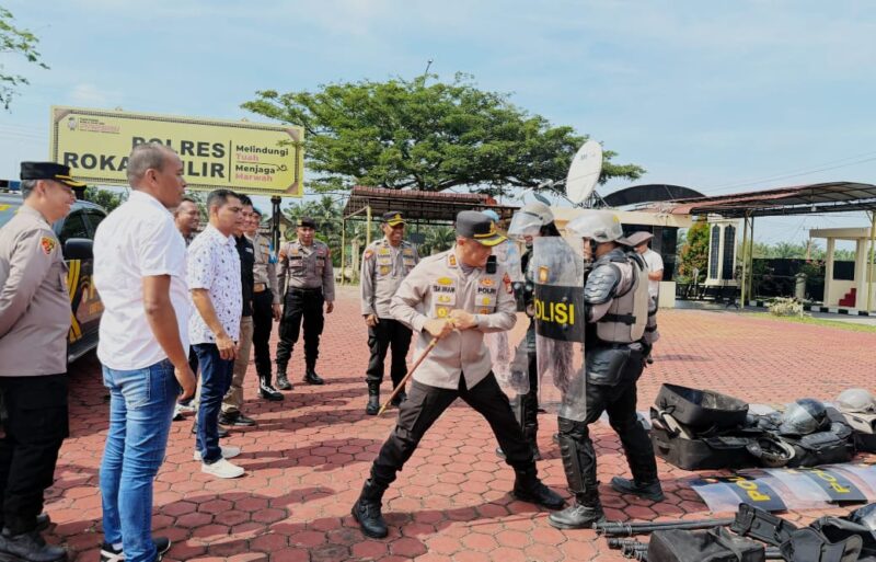 Rokan Hilir_Analisa – Dalam rangka memastikan kesiapsiagaan menghadapi dinamika situasi nasional, Kapolres Rokan Hilir AKBP Isa Imam Syahroni, S.I.K., M.H. melaksanakan pengecekan peralatan Dalmas (Pengendalian Massa) serta kendaraan bermotor (ranmor), Kamis (2/4/2026) sekira pukul 09.30 WIB di Lapangan Apel Mapolres Rokan Hilir.