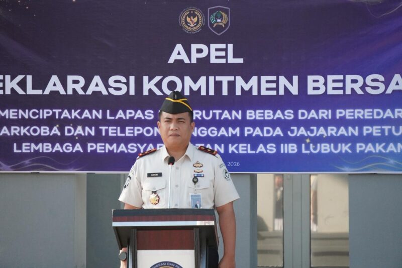 Kegiatan yang dilaksanakan di lapangan apel Lapas Lubuk Pakam ini dipimpin oleh Kalapas Lubuk Pakam, Hakim Sanjaya dan diikuti oleh jajaran pejabat struktural serta petugas Lapas Lubuk Pakam. Apel deklarasi ini menjadi momentum penting untuk memperkuat integritas dan tanggung jawab seluruh petugas dalam memerangi peredaran narkoba serta penggunaan handphone ilegal di dalam lapas. Dengan penuh khidmat, seluruh peserta apel menyatakan komitmen bersama untuk tidak terlibat dalam segala bentuk pelanggaran yang dapat mencoreng nama baik institusi.