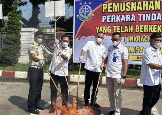 Lembaga Pemasyarakatan (Lapas) Kelas IIA Binjai turut menghadiri kegiatan pemusnahan barang bukti perkara pidana yang telah berkekuatan hukum tetap (inkracht), yang dilaksanakan Kejaksaan Negeri Binjai, Rabu (22/4/2026).