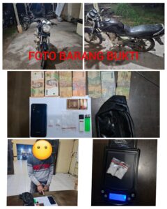 Sekitar pukul 19.00 WIB, petugas melihat seorang pengendara sepeda motor Honda Megapro berwarna hitam yang menunjukkan gelagat tidak wajar. Setelah dilakukan penghentian dan pemeriksaan, petugas menemukan barang yang diduga narkotika disembunyikan di dalam bungkus rokok di dalam tas milik orang tersebut.