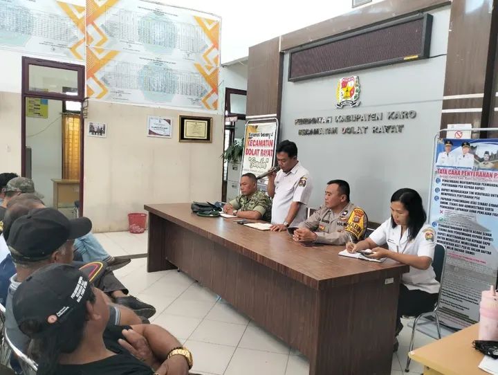 Kegiatan tersebut dihadiri oleh berbagai unsur pemerintahan dan pemangku kepentingan, di antaranya Camat Dolat Rayat Intaperi Ginting, perwakilan Polsek Tigapanah yang diwakili Bhabinkamtibmas Aiptu Hadianto Barus, Danramil 01/BJ Kapt Arm Catur H.W., serta unsur kesehatan, pendidikan, perbankan, perusahaan, hingga tokoh masyarakat se-Kecamatan Dolat Rayat.