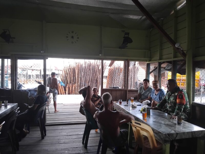 ROKAN_HILIR— Personil Koramil 04/Kubu Kodim 0321 Rohil Serda Musrianto yang bertugas di Posramil Panipahan melaksanakan kegiatan Komonikasi sosial (Komsos) dengan beberapa Warga.
